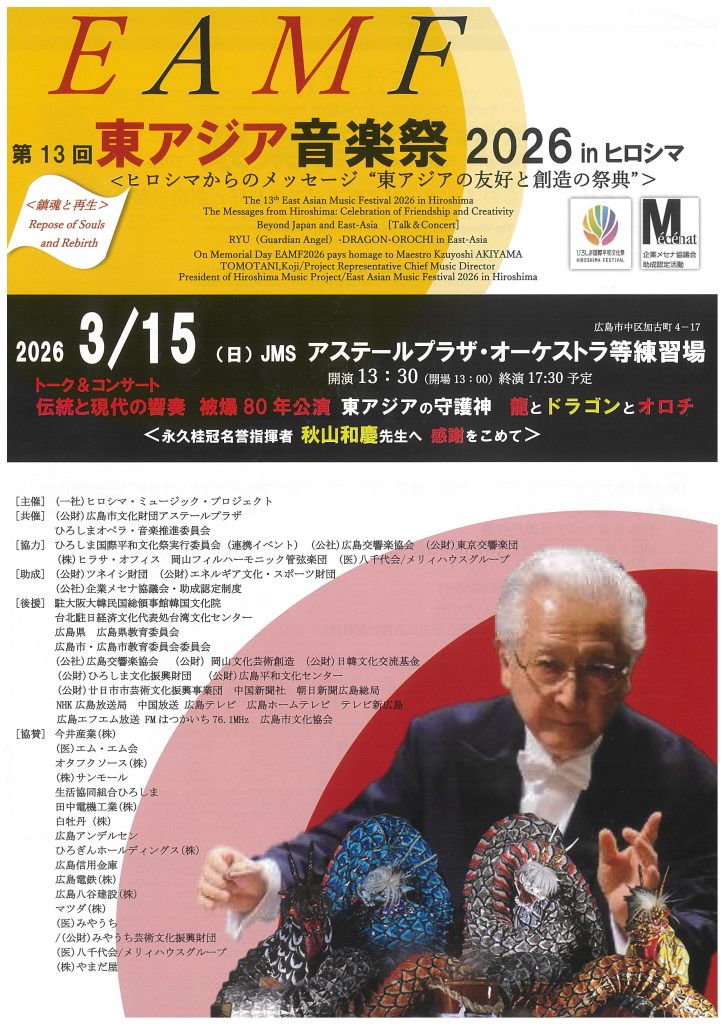 第13回東アジア音楽祭2026inヒロシマ「ヒロシマからのメッセージ”東アジアの友好と創造の祭典”」に協賛しました。