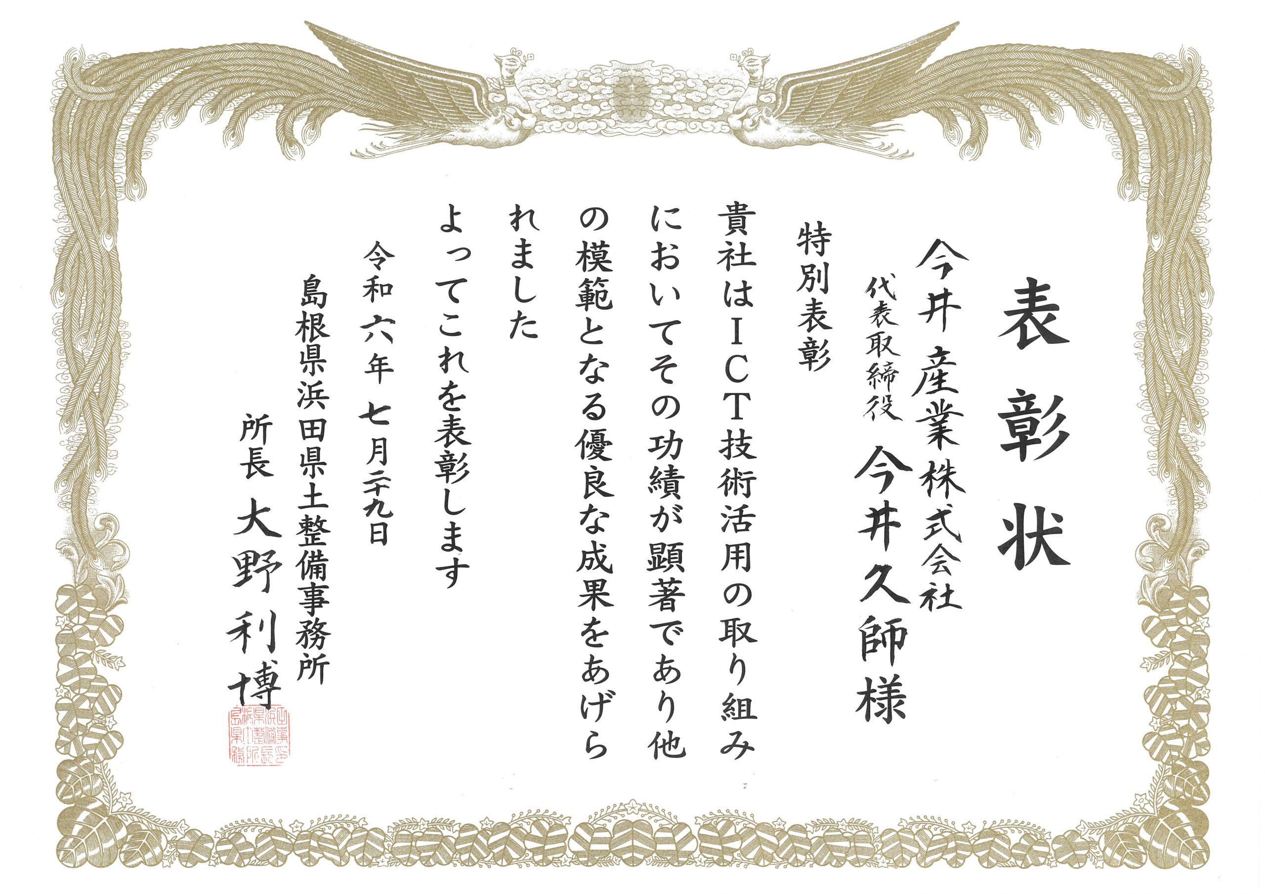 併せて弊社のICT技術活用の取り組みに対し特別表彰をいただきました。