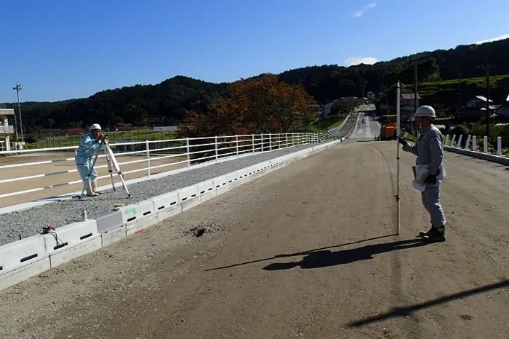 舗装面の平坦性を生み出す熟練技術者の卓越した技は、当社の誇りであり、これまで高品質な島根の道づくりを支えてきました。私たちはその大切な技術をリスペクトしつつ、さらに高みを目指し、技術を次世代へと繋いでいます。